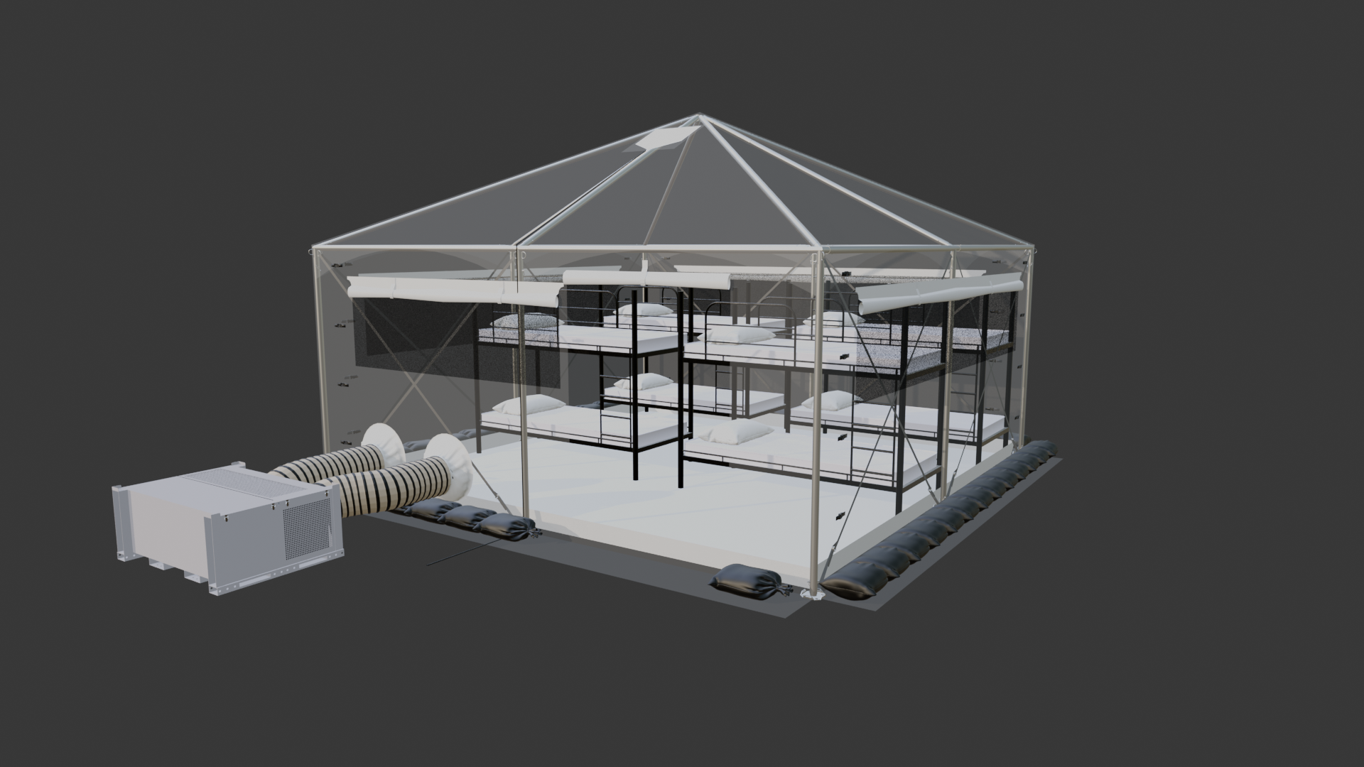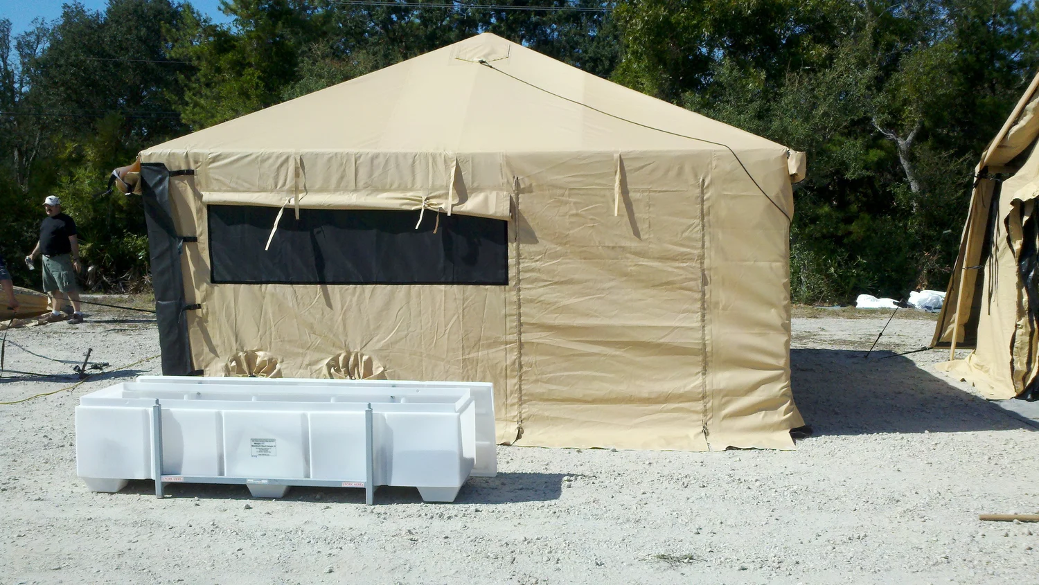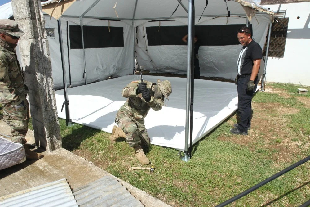 Dzięki solidnej konstrukcji i modułowej budowie namiot może pełnić funkcję punktu medycznego, centrum dowodzenia, zaplecza logistycznego lub tymczasowego zakwaterowania.